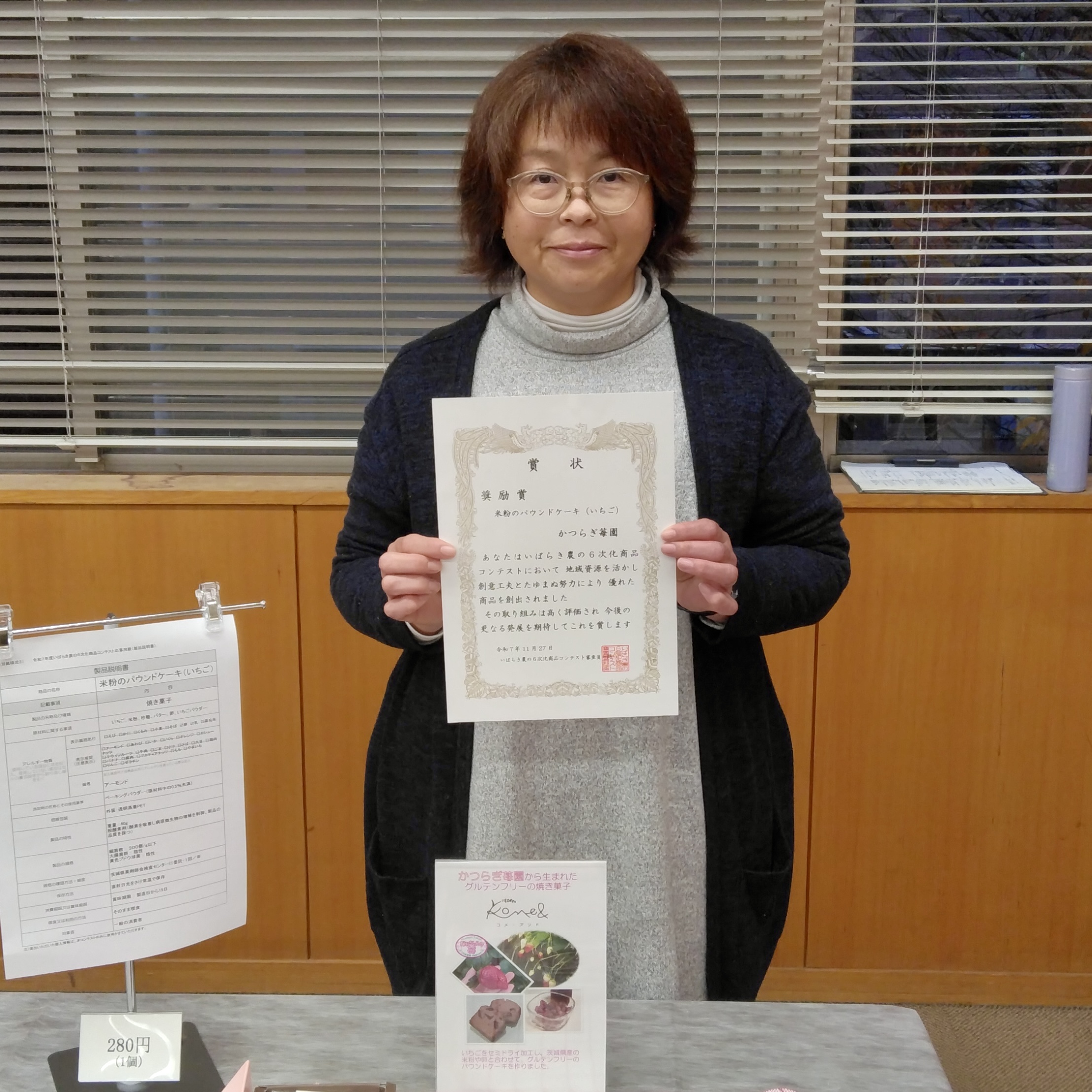 【Kome&】米粉のパウンドケーキ(いちご)は令和7年度いばらき農の6次化商品コンテストで奨励賞を受賞しました。