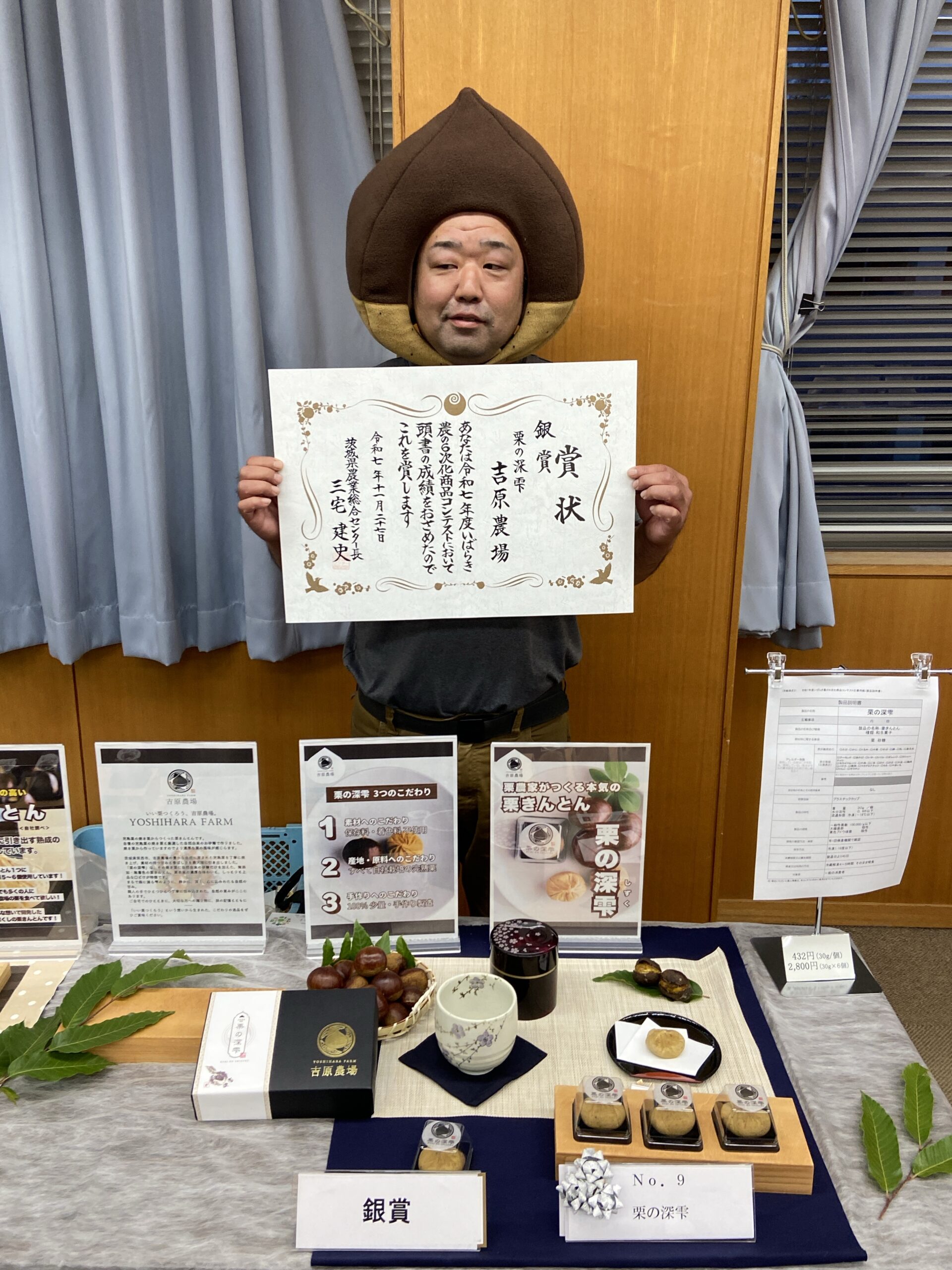 今回、銀賞をいただいた「栗の深雫~くりのしずく~」は朝露と共に収穫できる最も美しい栗の実をイメージして名付けました。